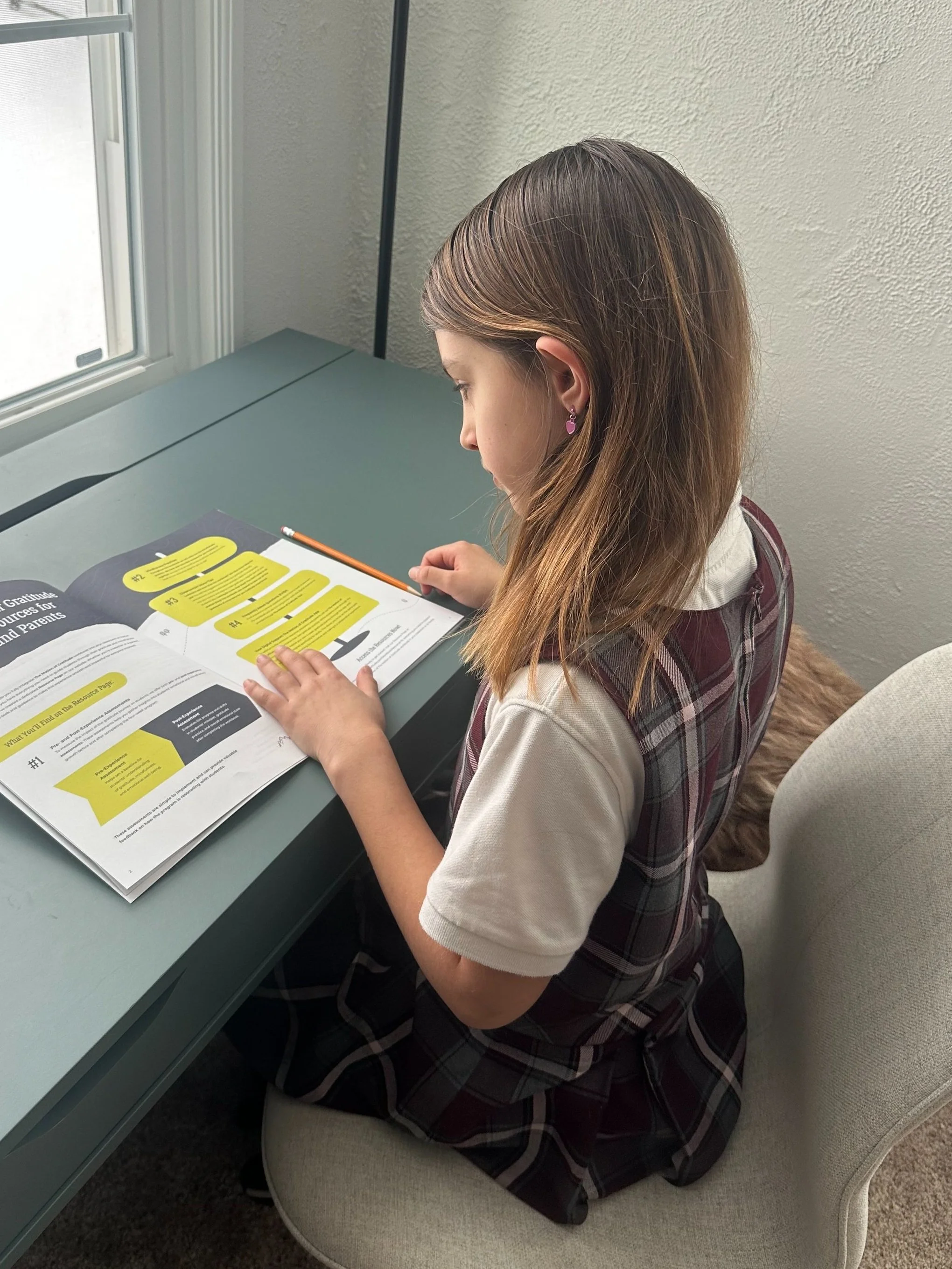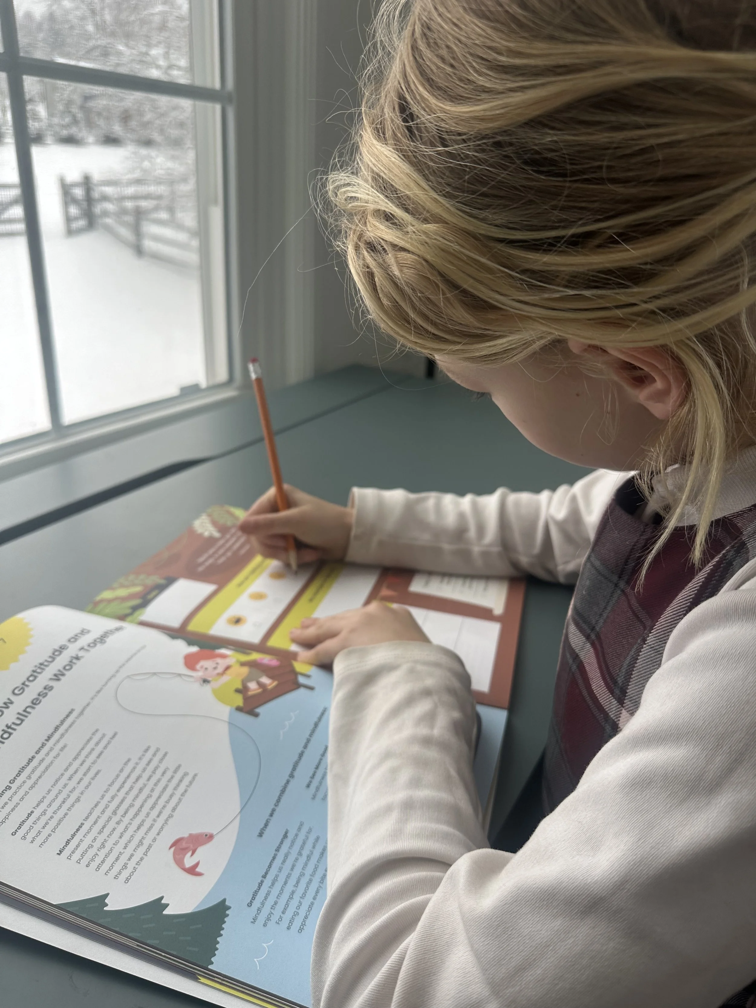 We partner with schools to bring accessible, research-informed practices into the classroom.Gratitude Guidebooks: Age-appropriate journals for elementary and secondary students to build emotional literacy, mindfulness, and resilience.